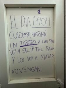 En el caso del Pía Di Doménico, el propio equipo directivo confirmó que el mensaje hallado decía “BALACERA 17/04 NO FALTES”, el cual fue eliminado de inmediato tras ser detectado . Desde la institución señalaron que podría tratarse de un hecho aislado, posiblemente vinculado a desafíos virales en redes sociales, aunque reforzarán las medidas de supervisión y cuidado.