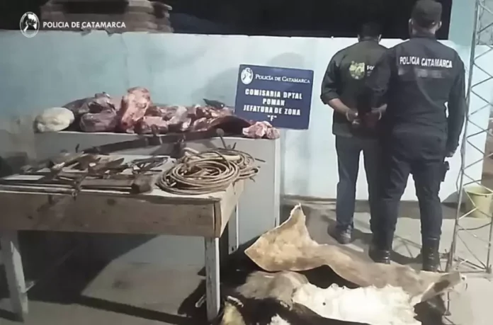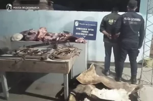 El procedimiento se realizó tras la denuncia de un hombre mayor de edad, quien manifestó haber sido víctima del robo de ganado. Con las directivas de la Fiscalía de la Segunda Circunscripción Judicial, intervinieron efectivos de la División Abigeato de la Policía de la Provincia, junto a la Comisaría de Pomán, peritos de la Dirección General de Criminalística y personal de Bromatología Municipal.