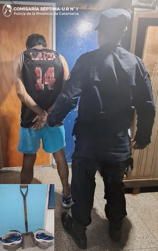 Durante recorridos preventivos por la esquina de avenida Choya y calle Costanera Diaguitas, efectivos de la Comisaría Séptima aprehendieron a un hombre de apellido Bustamante (51), debido a que habría sido sorprendido llevando una (01) pala, dos (02) baldes y un (01) par de zapatillas, que quedaron en calidad de secuestro.