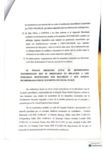 El escrito también señala que la titularidad registral del inmueble correspondería a una persona vinculada al entorno legal del financista —la concubina del abogado Ricardo Angelina—, circunstancia que, según el planteo presentado ante la justicia, debería ser investigada para determinar si existió algún tipo de maniobra orientada al eventual ocultamiento de bienes.