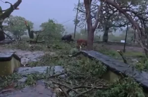 Uno de los puntos más críticos se registró en el acceso a la hostería local, donde un ejemplar de jacarandá cayó de forma parcial, bloqueando la entrada y dificultando severamente la circulación en el área.