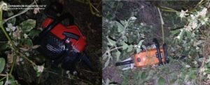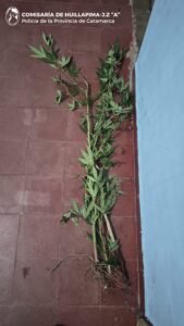 Posteriormente, los policías realizaron un rastrillaje por un descampado de la zona, donde recuperaron un (01) parlante marca Philips, de color negro y dos (02) motosierras, que quedaron en calidad de secuestro y, mientras los uniformados realizaban este procedimiento, observaron una (01) planta de la variedad Cannabis Sativa, que estaba siendo cultivada en el lugar, en virtud de lo cual dieron intervención a sus pares del Grupo Antinarcóticos de Unidades Regionales (GAUR- Capayán), dependientes de la Dirección Drogas Peligrosas de la Policía de la Provincia, quienes procedieron al secuestro de la misma y labraron las actuaciones de rigor, bajo las directivas del Juzgado Federal.
