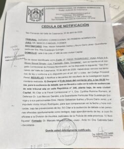 De acuerdo con la cédula de notificación judicial, el juez resolvió fijar la audiencia de debate para esa fecha, que se desarrollará en la sala de audiencias del tribunal en la ciudad Capital. Además, se citó a las partes, testigos y representantes del Ministerio Público para que comparezcan en el inicio del proceso.