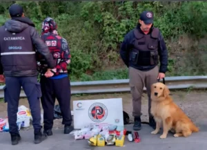 El operativo se llevó a cabo en el puesto caminero “La Viña”, ubicado sobre la Ruta Nacional 38, donde los efectivos realizaban controles vehiculares e identificación de personas. Durante la inspección de un colectivo de larga distancia proveniente de Jujuy con destino a Mendoza, el can “Apolo”, adiestrado para la detección de estupefacientes, marcó una mochila y una bolsa de consorcio negras pertenecientes a un pasajero de 23 años.