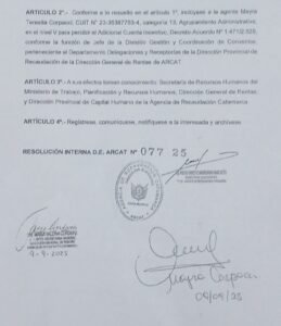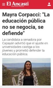 Mayra Corpacci hija del diputado provincial Hugo Corpacci hoy candidata a senadora suplente por Capayan, se adelantó a los hechos teniendo en cuenta que la imagen de su padre está bastante desgastada en el departamento, habría solicitado que por el solo motivo de participar en la lista, le tenían que mejorar su sueldo sin dudas que su padre Hugo se encargó de ello y como el pedido de una hija es una orden, desde ARCAT LE DIERON UNA JEFATURA.