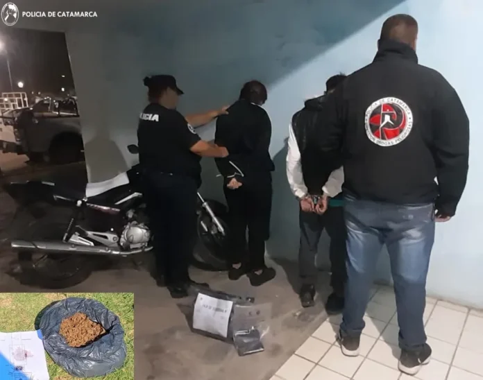 En un procedimiento policial, ayer en la Ruta Nacional N° 64, en el ingreso oeste a la localidad de Bañado de Ovanta, Santa Rosa, personal de la Jefatura de Zona “B” identificó a una pareja de 20 y 22 años de edad que circulaba en una motocicleta Honda CG Titán 150 cc. Según se precisó, en ese momento, los policías se percataron de que llevaban entre sus pertenencias una bolsa con sustancia aparentemente estupefaciente. Dada la situación, solicitaron la presencia de sus pares de la Comisaría Departamental y del Grupo Antinarcóticos de Unidades Regionales (GAUR-Santa Rosa). De esta manera, los efectivos determinaron que se tratarían 1,806 kilos de marihuana. La sustancia quedó en calidad de secuestro, al igual que dos teléfonos celulares iPhone y el rodado en el que circulaban.